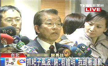 謝長廷今天出面為自己辯駁,期間似乎眼泛淚光,他強調:“假如有人能夠證明這個秘密有泄露(是我泄露的),有關單位有掌握這個秘密,如果施先生(施明德)能夠證明,我跪著跟他道歉。”(陳佳慧)