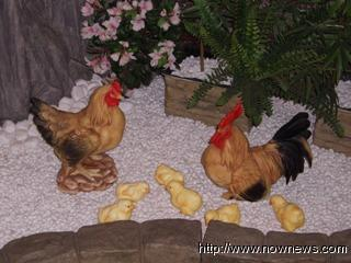 呂秀蓮辦公室大門處,有一對公雞和母雞帶著一群小雞,但母雞看起來比公雞還要“雄糾糾、氣昂昂”。 圖片來源:臺灣《今日新聞》