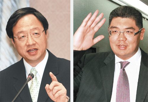 臺北市長郝龍斌第二任任期將過半,國民黨內有意參選2014市長者已開始暖身。其中悠游卡公司前董事長連勝文(右)與臺“行政院副院長”江宜樺(左)最受外界關注。