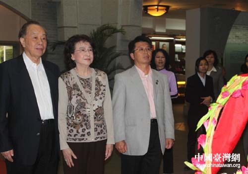 林澄枝女士、謝孟雄先生、劉弘景教授向?qū)O中山銅像敬獻花籃(圖片來源:中山市臺辦)