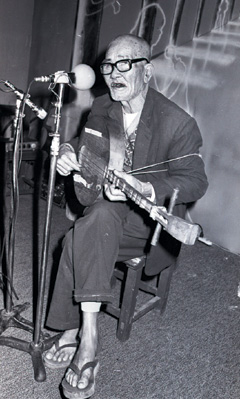 年逾70歲的陳達在演奏樂曲。(圖片來自臺灣媒體)