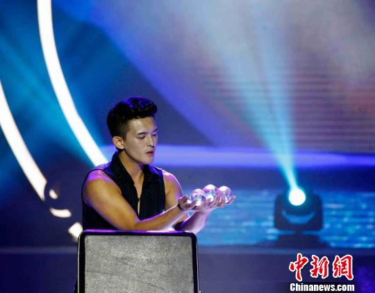臺(tái)灣青年的創(chuàng)意水晶球表演《靜之美》。 鄭偉明 攝