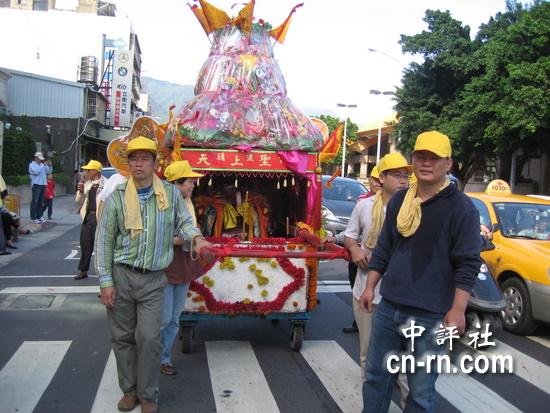人民網(wǎng)4月20日電 據(jù)中評社報道,位于臺北市北投區(qū)的關渡宮祀奉媽祖,平日香火鼎盛,遇到媽祖誕辰繞境,信徒更不敢怠慢,按照臺灣民間傳統(tǒng)習俗,出動各式陣頭,為媽祖助威,沿路民眾也準備香案,放鞭炮、送紅包祈求媽祖保佑平安。