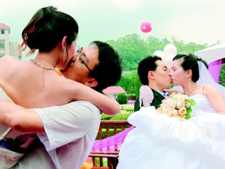 南投縣柯士文、許雅雯著古裝結婚,他的表哥簡復強與李宜芳牽手,雙喜臨門。澳洲籍Jeremy Horcock是唯一外籍新郎,因新娘彭婉萍希望婚禮特別,上網搜尋到苗栗這場別開生面的婚禮。