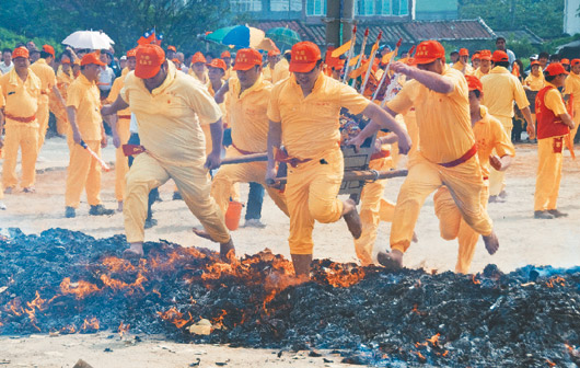 桃園縣大園鄉(xiāng)福海宮舉辦“過火”儀式。 來源:臺灣《聯(lián)合報》