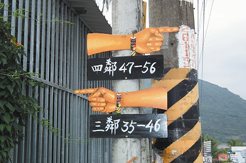 據(jù)臺灣聯(lián)合報報道,臺東金峰鄉(xiāng)賓茂村街道錯綜復雜,為方便到訪游客尋路,結合地方采風設計“手指”指示牌,戴著琉璃珠的手臂,清楚地讓訪客辨識各街巷,也融合了當?shù)嘏艦匙宓膫鹘y(tǒng),意外成為在地特色。