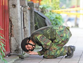 臺北路邊驚現手榴彈 臺防爆隊員全副武裝檢驗(圖)