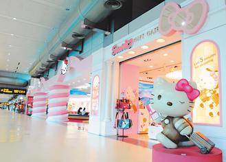 據臺灣《聯合報》報道,臺灣桃園機場靠著Hello Kitty入選全球十大友善機場。桃園機場除了有Hello Kitty主題候機樓、游樂區,也有Hello Kitty育嬰室和電話亭,甚至有Hello Kitty太陽餅、鳳梨酥和巧克力等限量商品。