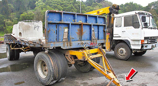 肇事聯結子車的連接器(箭頭處)斷裂。(圖片來自臺媒)