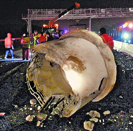 據警方調查,出事時,聯結車車上所拉的7個水泥管每一個重達2公噸。(中國臺灣網 李帥)