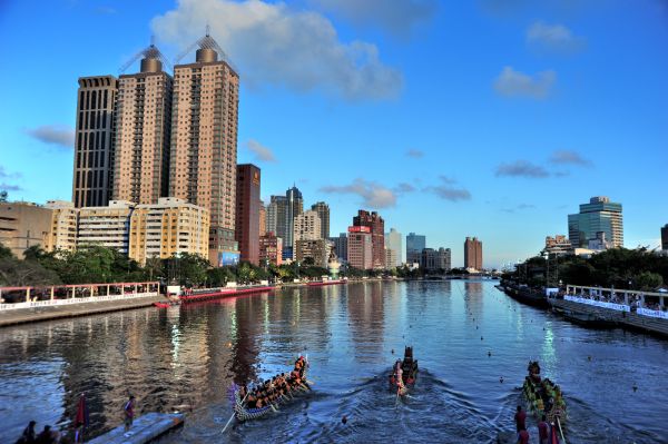 今年高雄市的端午龍舟賽依循以往在愛(ài)河水域以及林園區(qū)的中蕓漁港兩地同時(shí)舉行。今年愛(ài)河龍舟賽參賽隊(duì)伍更創(chuàng)新高,共134支隊(duì)伍、超過(guò)3000人參賽。參賽隊(duì)伍聚集在河畔整隊(duì)歡呼,展現(xiàn)旺盛氣勢(shì),而三度組隊(duì)來(lái)臺(tái)參賽的姐妹城市西雅圖,也以一首《高山青》為隊(duì)員壯聲勢(shì)。