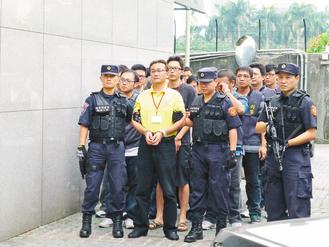 張安樂將返臺,傳黑道可能大陣仗接機,臺“刑事局”昨天起掃黑;被視為是張安樂嫡系人馬的竹聯地堂大哥許伯獎(黃衣)被檢肅到案。(圖片來自臺媒)