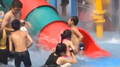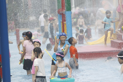 臺(tái)北市中午出現(xiàn)今夏最高溫,臺(tái)北自來(lái)水源區(qū)擠滿(mǎn)戲水民眾。(圖片取自臺(tái)灣媒體)