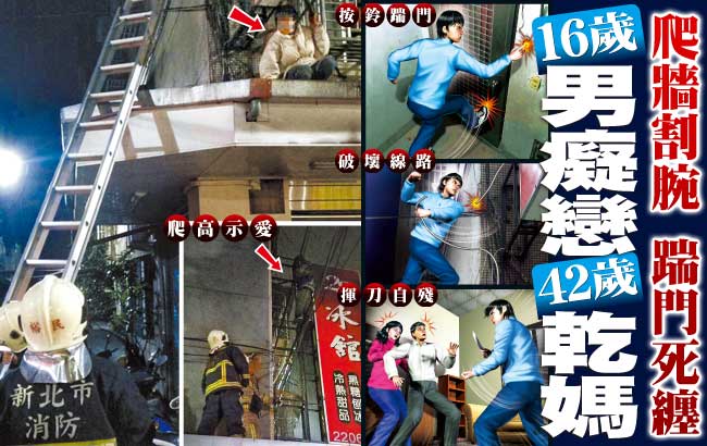 臺灣16歲男癡戀42歲干媽 爬墻割腕踹門死纏(臺媒圖)