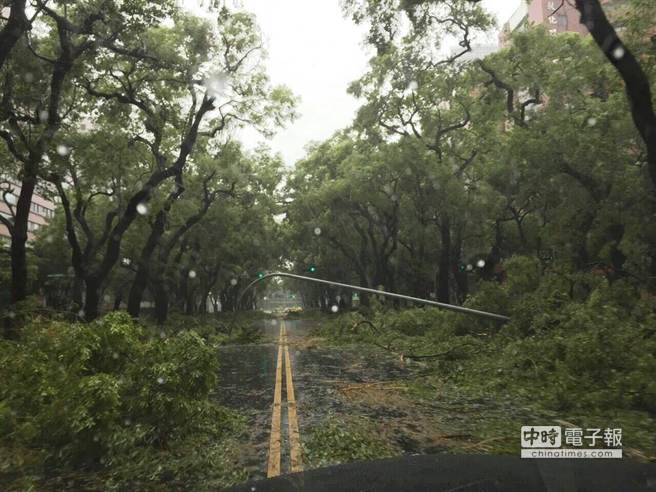 蘇迪勒臺(tái)風(fēng)讓臺(tái)北市超過6千棵樹倒,圖中民眾戲稱仁愛路出現(xiàn)小火車。(臺(tái)媒圖)