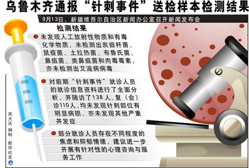圖表:烏魯木齊通報(bào)“針刺事件”送檢樣本檢測(cè)結(jié)果 新華社發(fā)