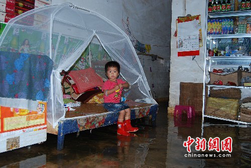 6月1日,廣西來賓市遭受54年未遇特大暴雨襲擊,市區(qū)多處被淹,兒童在洪水中度過六一兒童節(jié)。中新社發(fā) 吳清文 攝 中新社發(fā) 攝