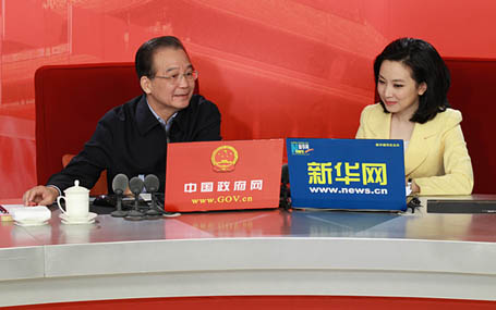 27日上午,中共中央政治局常委、國務院總理溫家寶再次專程來到中國政府網和新華網訪談室,接受中國政府網和新華網聯合專訪,同海內外網友進行在線交流。