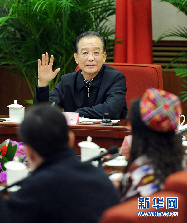2月6日至10日,國務院總理溫家寶在中南海主持召開五次座談會,聽取社會各界人士對《政府工作報告(征求意見稿)》的意見和建議。這是2月6日,溫家寶聽取專家、學者對《政府工作報告(征求意見稿)》的意見和建議。 新華社記者 馬占成 攝