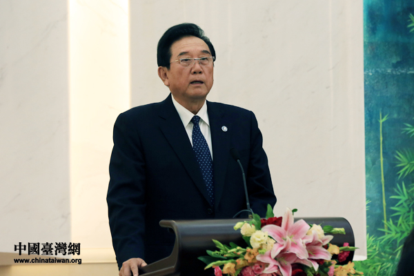 中共中央臺灣工作辦公室、國務(wù)院臺灣事務(wù)辦公室與海峽兩岸關(guān)系協(xié)會26日下午在人民大會堂舉行“九二共識”20周年座談會。圖為海協(xié)會會長陳云林在座談會上講話。(中國臺灣網(wǎng) 陳佳慧 攝)