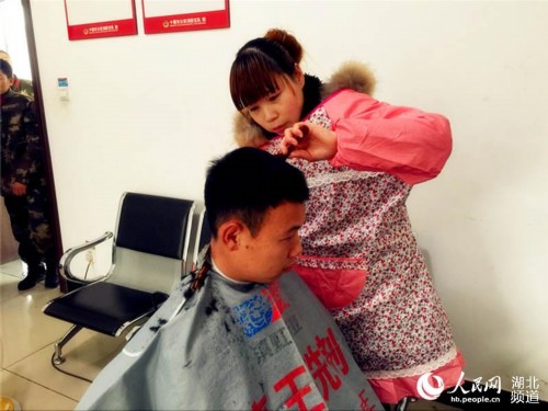 人民網(wǎng)十堰1月1日電 2015年12月31日,在辭舊迎新之際,湖北省十堰市溫暖365天志愿者群的愛心志愿者們走進(jìn)武警十堰市消防支隊(duì)張灣中隊(duì),為消防官兵義務(wù)理發(fā),讓消防官兵清清爽爽過新年。