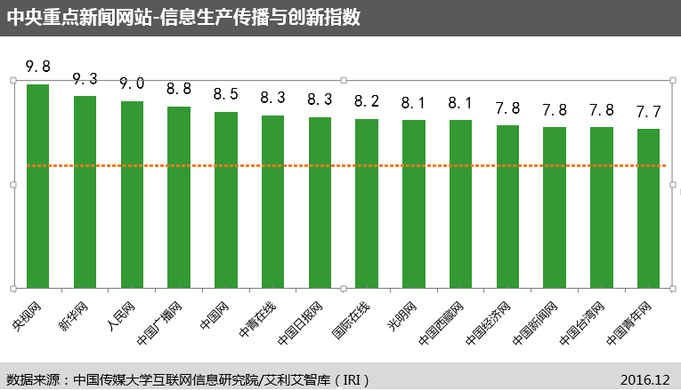 論壇上,研究院亦發布了2016年12月份的《國內主要新聞網站信息生態首期評估報告》,報告的測評范圍包括國內14家中央重點新聞網站、6家主要商業新聞網站。具體呈現以下特點: