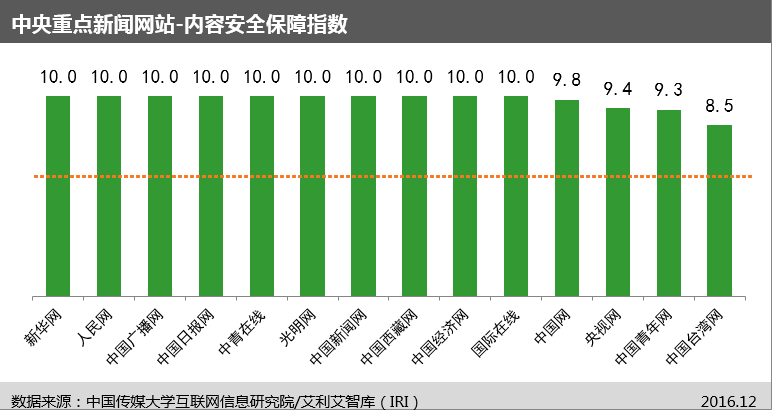 國際在線、中國經濟網、中國西藏網該項分值較低,亟需在用戶行為、賬號管理等方面加強規范管理。