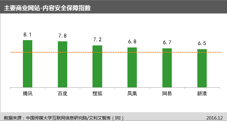 主要商業網站在信息生產傳播與創新能力、信息導向方面彼此差異不大,但與中央重點商業網站之間還存在一定差距;在內容安全保障方面,部分商業網站存在推送低俗色情信息、“標題黨”等現象,內容把關需進一步加強。