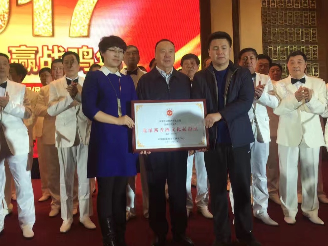 第十一屆全國政協副主席、中國西部研究與發展促進會會長白立忱在新春聯誼會上為北派醬香酒文化起源地頒發認證牌匾
