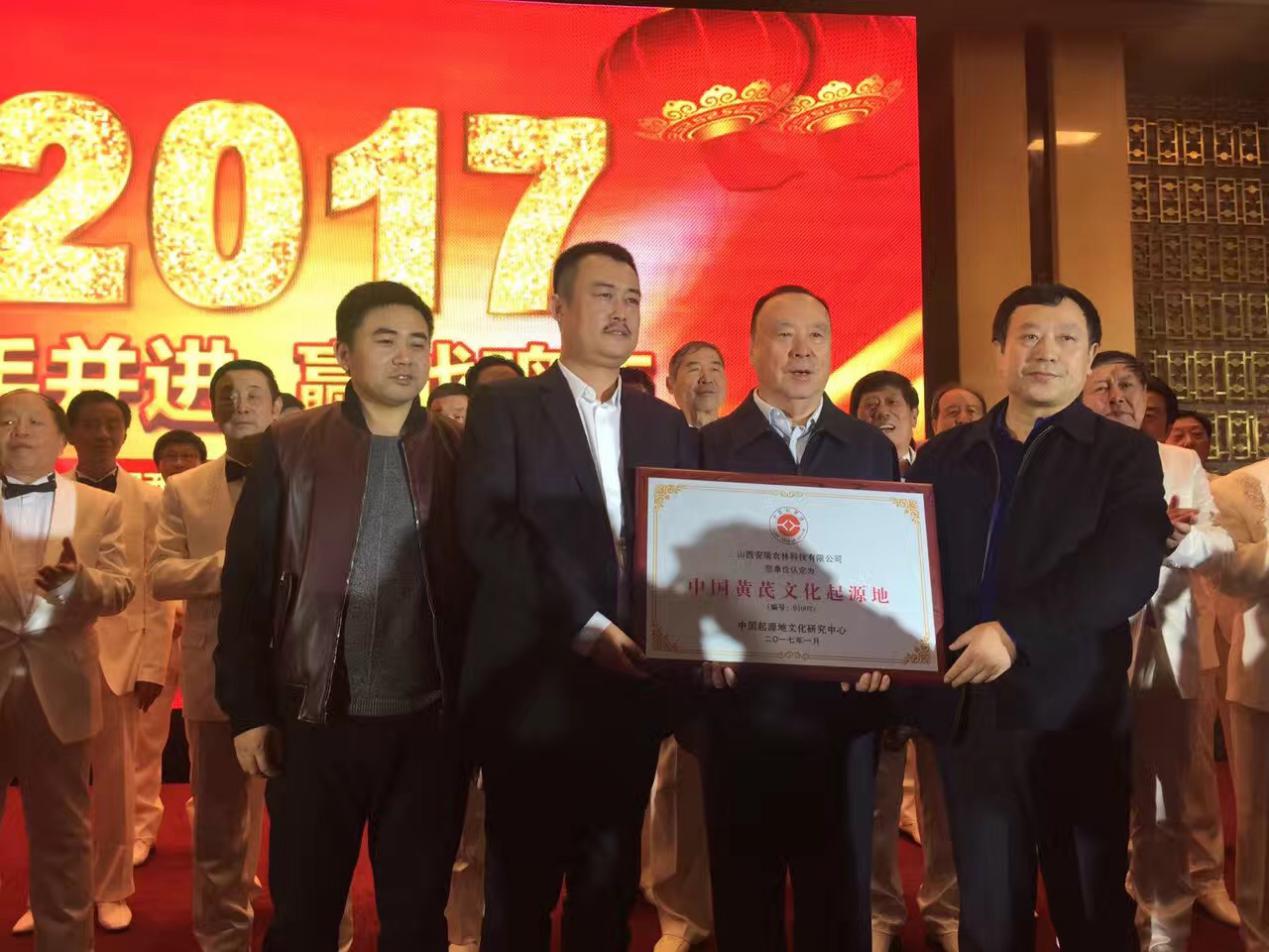 第十一屆全國政協副主席、中國西部研究與發展促進會會長白立忱在新春聯誼會上為中國黃芪文化起源地頒發認證牌匾