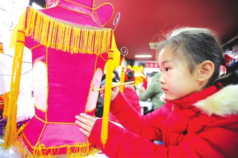 新莊小學六年級的吳嘉怡同學做了一只小雞燈籠,她說自己特別喜歡毛茸茸的小雞仔,不僅是因為今年是雞年,還因為她也是屬雞的。吳嘉怡說,9月份她就要升入初中了,以后可能沒有很多時間來做手工物件了,“我要把今天做的小雞燈籠帶回家,當做元宵禮物送給奶奶。”