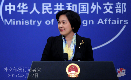 原標(biāo)題:2017年3月27日外交部發(fā)言人華春瑩主持例行記者會(huì)