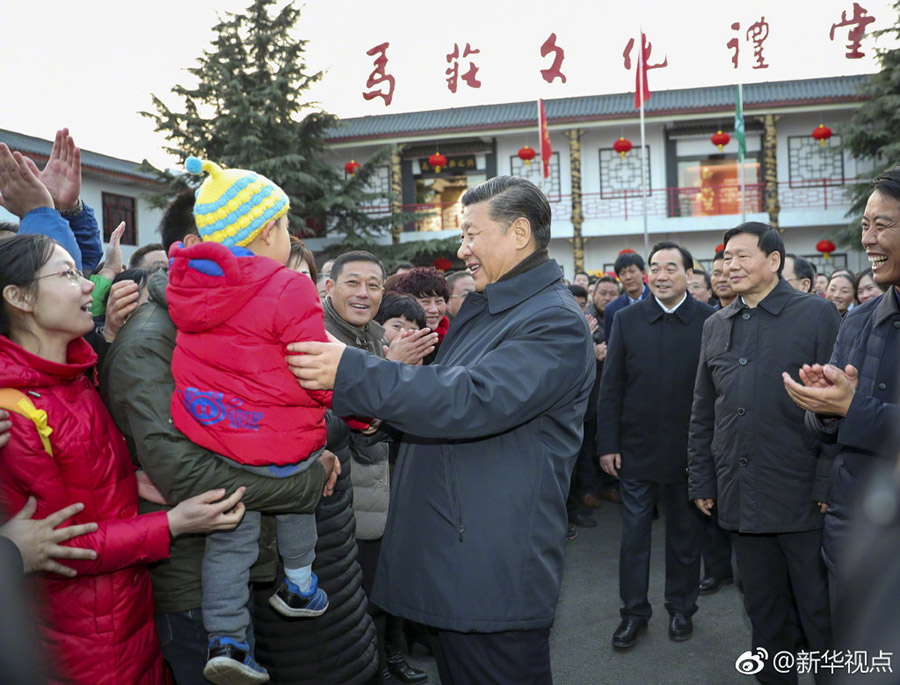 新華網北京12月12日電 12日下午,正在徐州考察的習近平總書記走進馬莊村黨員活動室,與正在學習黨的十九大精神的黨員們親切交流。習近平說,剛才在村史館看到你們村班子很穩定,說明村干部獲得了村民的支持。農村要發展好,很重要的一點就是要有好班子和好帶頭人,希望大家在十九大精神指引下把村兩委班子建設得更強。