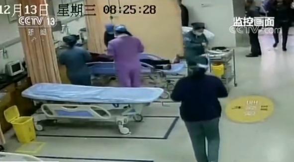 事發當天上午,年近六旬的柯女士因為頭暈、胸悶不適,在女兒的陪伴下前往當地醫院就診,快走到醫院門口時,老人昏倒在斑馬線上。過往路人、交警和聞訊趕來的醫院護士都過來幫忙,不到五分鐘,老人被送進搶救室,30多名醫護人員輪流為她做心肺復蘇。在將近3小時的心肺復蘇中,老人出現了5次心跳驟停,瞳孔放大的狀態。