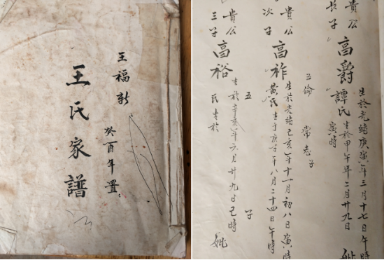 今年79歲的王福新,是王淑蘭的大侄,他拿出王氏家譜告訴前來查訪的志愿者,稱他的爺爺和王淑蘭的父親是親兄弟。爺爺王亯(音同“想”)爵排行老大,王淑蘭的父親王亯祚排行老二。王福新描述,王淑蘭父親小名叫王聰,他們稱他為二爺爺,王淑蘭母親王黃氏為二奶奶。他們曾和王淑蘭老人的母親和姐姐共同生活在一個院子里,將近二十年。