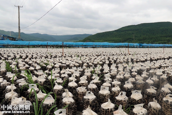 一眼望不到邊的黑木耳種植菌包。(中國臺灣網(wǎng) 尹賽楠 攝)