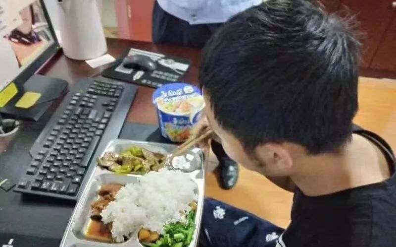 中隊“住”著個小伙,很快同事們都知道了,食堂廚師特意給他做了一頓飯,胡豪杰還給他買來一桶方便面。