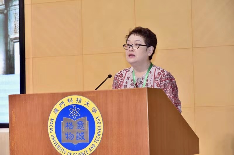 澳門語言學會黃翊會長致辭。(中國臺灣網發 李康 攝)