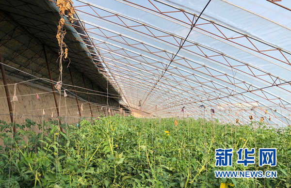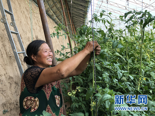 圖為劉貴榮在自家大棚打理西紅柿。新華網汪亞/攝