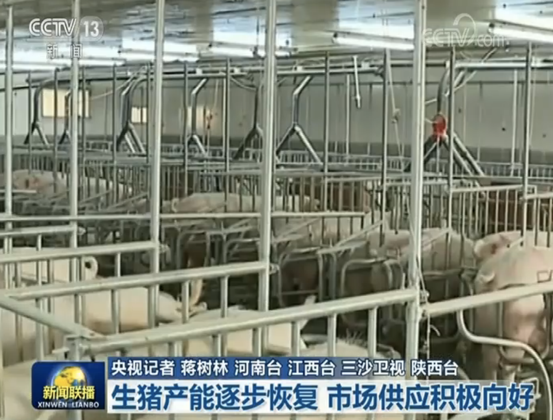央視網消息(新聞聯播):在一系列政策推動下,生豬生產呈現連續向好趨勢。據農業農村部監測,能繁母豬存欄連續5個月恢復增長,市場供應積極向好。