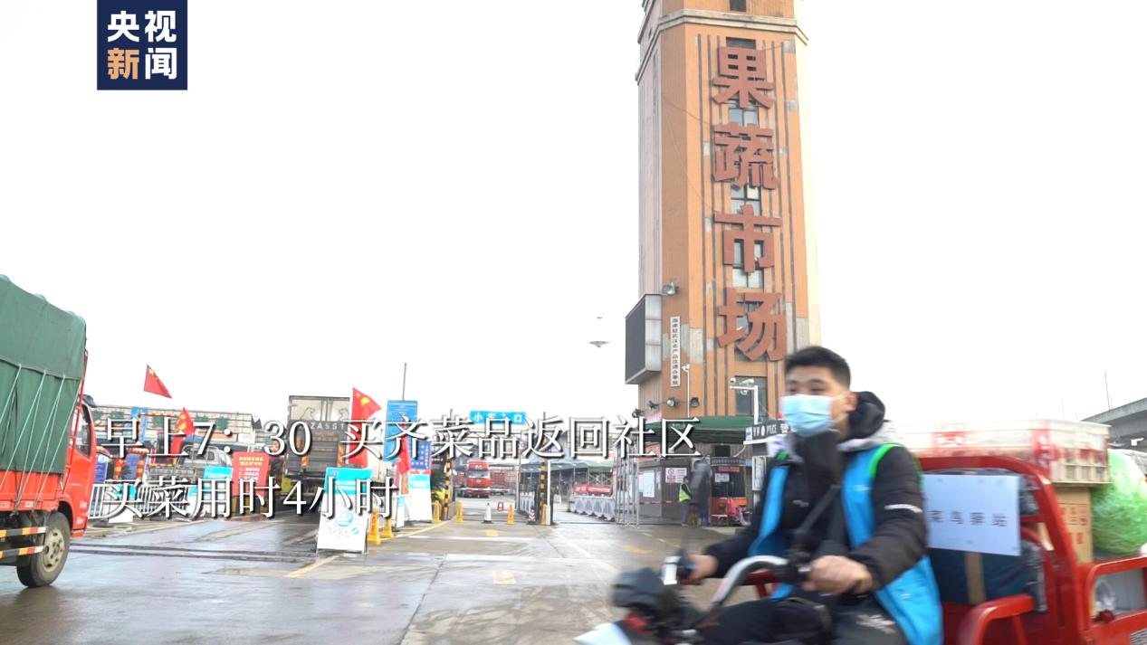 早上7點(diǎn)30分至中午11點(diǎn),蒼禹威買(mǎi)齊菜品返回社區(qū)。