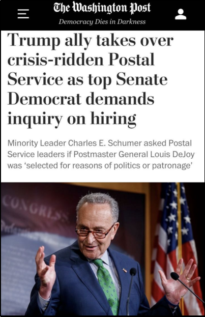 △《華盛頓郵報》報道,民主黨已于6月14日正式要求調查新郵政局長的任命