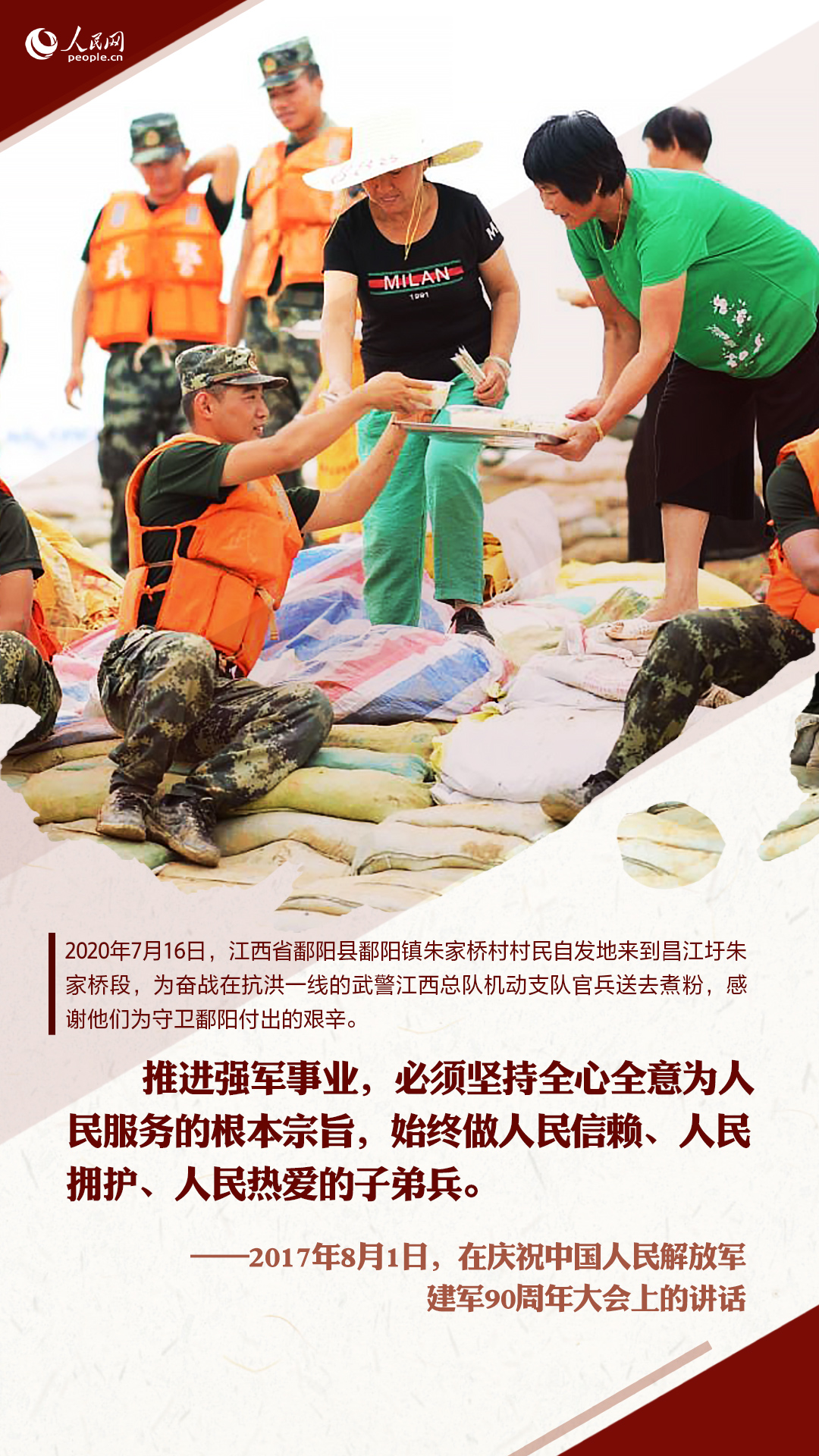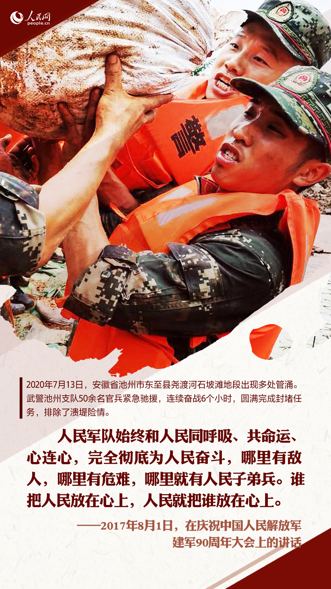 十八大以來,習近平在多個重要場合囑托人民子弟兵要全心全意為人民服務。這些話語,猶在耳畔,人民網圖解新聞制作一組海報,重溫習近平的殷殷囑托,并致敬與洪水戰斗的人民子弟兵!