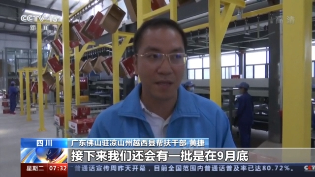 廣東佛山駐涼山州越西縣幫扶干部 黃捷:接下來我們還有一批是在9月底,我們會試水銷往香港、銷往澳門,把深山里面的好山好水出的好果銷往我們粵港澳大灣區。