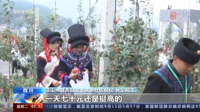 初秋時節,四川涼山越西縣這片千畝蘋果園迎來了第一個大豐收,首批采摘的20噸蘋果將被運往1800公里外的廣東佛山。