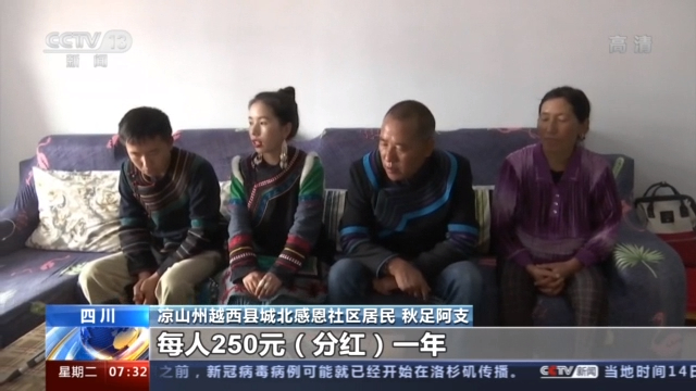 四川涼山州越西縣城北感恩社區居民 秋足阿支:前三年我們是每戶每人250元(分紅)一年,然后后面每年就是每戶每人1500元一年(分紅)。