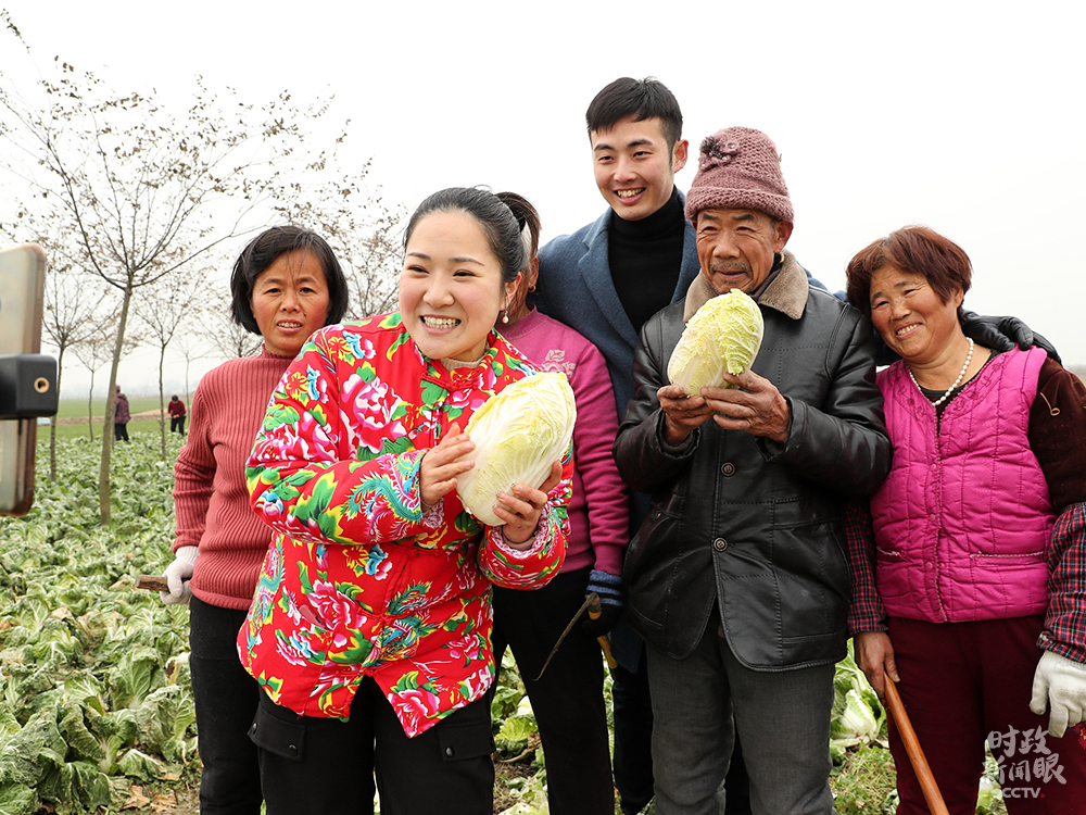 △12月23日,安徽蒙城縣某扶貧平臺工作人員通過手機直播帶貨,助農脫貧。