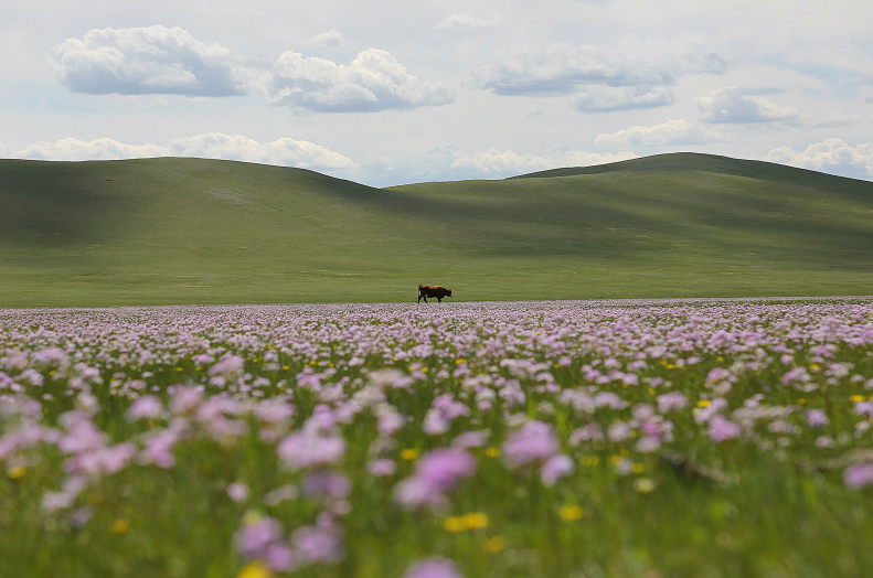 △這是在扎魯特旗拍攝的草原花海(2020年6月5日攝)。進(jìn)入夏季,內(nèi)蒙古自治區(qū)通遼市扎魯特旗北部山地草原生機(jī)勃勃。