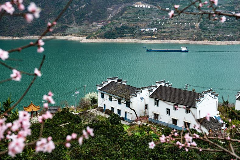 △這是2021年2月27日在三峽庫區(qū)秭歸縣屈原鎮(zhèn)西陵峽村拍攝的鮮花盛開的臍橙園。湖北省宜昌市秭歸縣在建設(shè)美麗鄉(xiāng)村中,因地制宜,在臍橙園里種植桃樹、李樹等果樹。