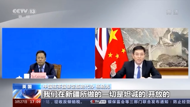 中國駐英國使館臨時(shí)代辦 楊曉光:有些國家,包括英國,甚至推出所謂制裁,中方對(duì)此堅(jiān)決反對(duì),絕不接受。中方不惹事,也不怕事,我們不主動(dòng)挑起對(duì)抗,但如果有人執(zhí)意對(duì)抗,中方只有奉陪到底。我們誠摯地希望英國民眾能夠拋開成見,不偏聽偏信,傳播謊言,為增進(jìn)中英相互了解,促進(jìn)兩國關(guān)系健康發(fā)展多做貢獻(xiàn)。